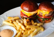 330 г • Мини-бургер с нашей фирменной булочкой, говяжьей котлетой, листьями салата, корнишоном и томатным майо. Подаются с картофелем фри.