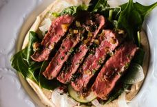Стейк-салат с филе миньон с хумусом
