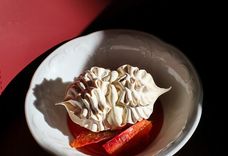 125 г • Швейцарская меренга с кремом шантильи, гелем из красного сицилийского апельсина и сегментами апельсина.