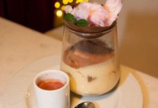 120 г • Классический итальянский десерт с нежным кремом из маскарпоне и кофейного ликера, слоями печенья савоярди, пропитанного эспрессо и конфитюром из томленой вишни. Посыпан алкализованным какао